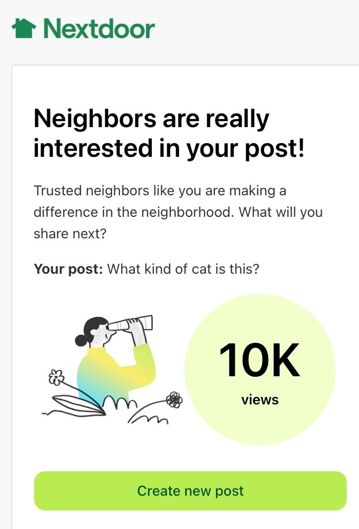 Later, I share the video with my wife, who has the idea to take it to Nextdoor, or as I like to call it, MAGA Substack.